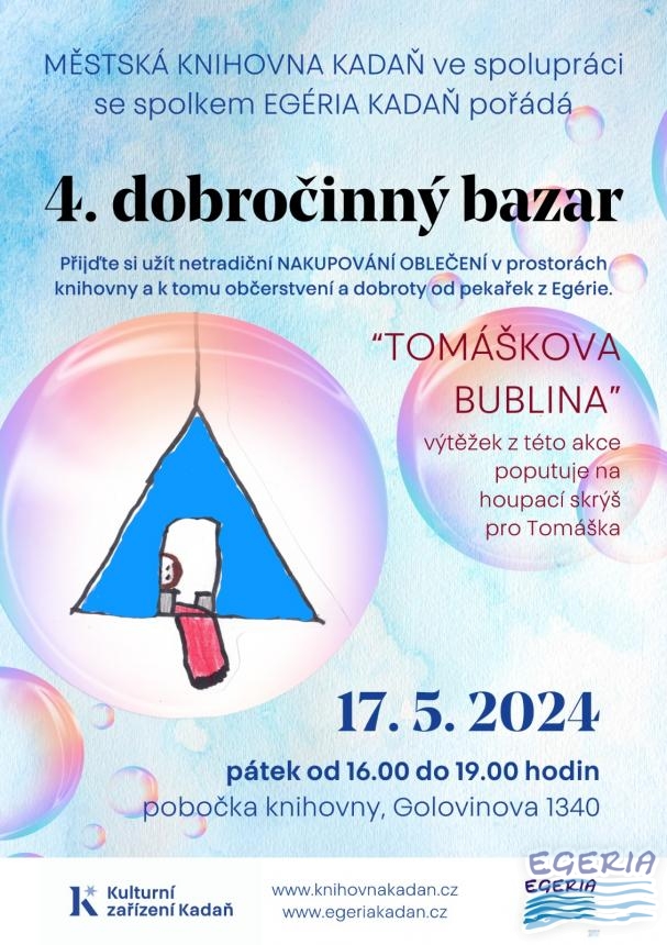 • 24.4.2026 – 6. DOBROČINNÝ BAZAR v KNIHOVNĚ KADAŇ (od 16:00 do 19:00)